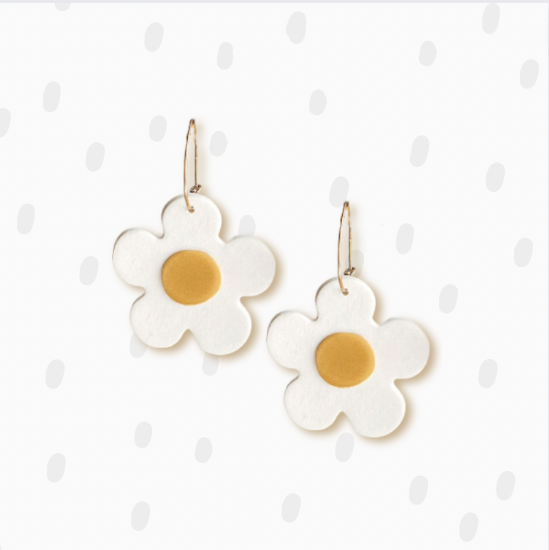 These dangle hoops are made of Polymer Clay and set on to 14k gold plated, hypo-allergenic 1 inch hoops. Lead and nickel free. Ultra lightweight.